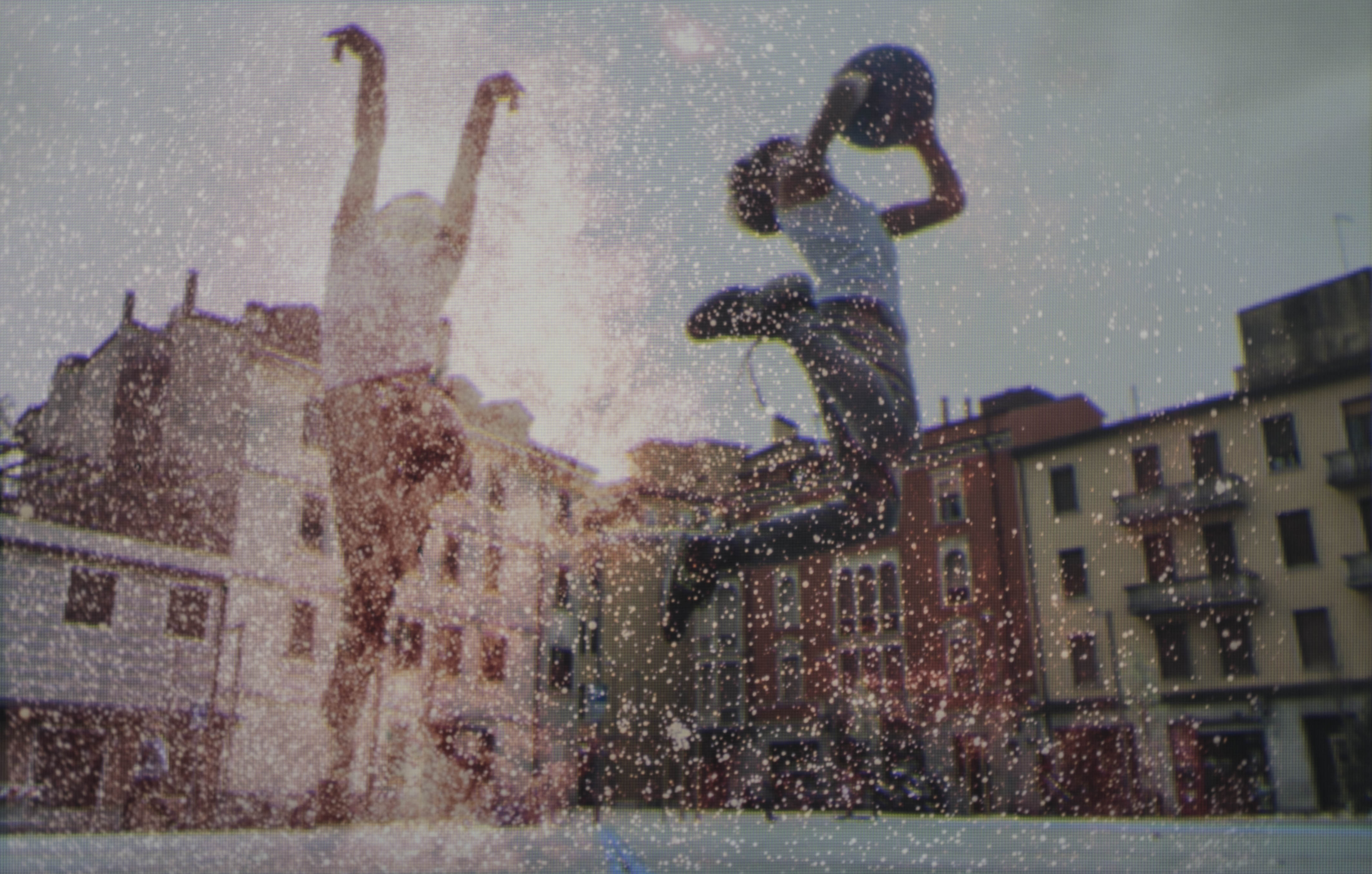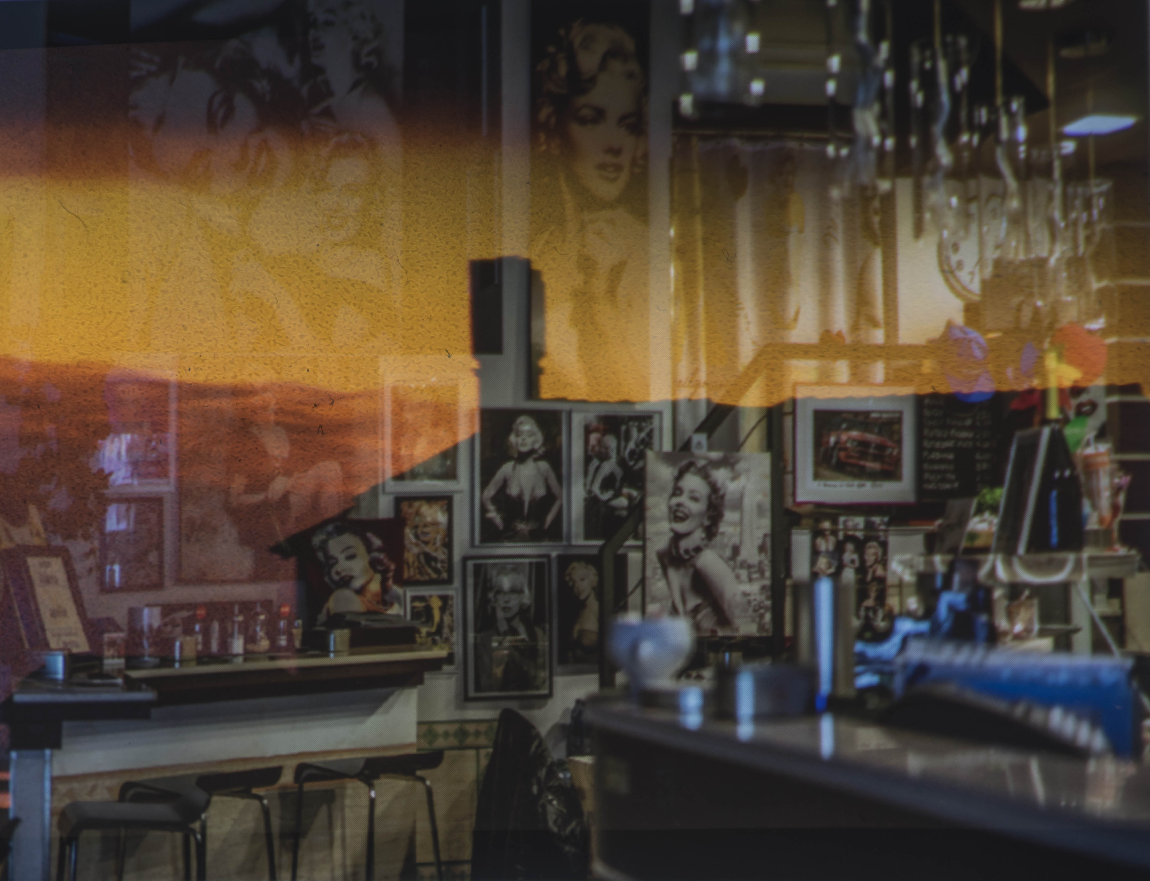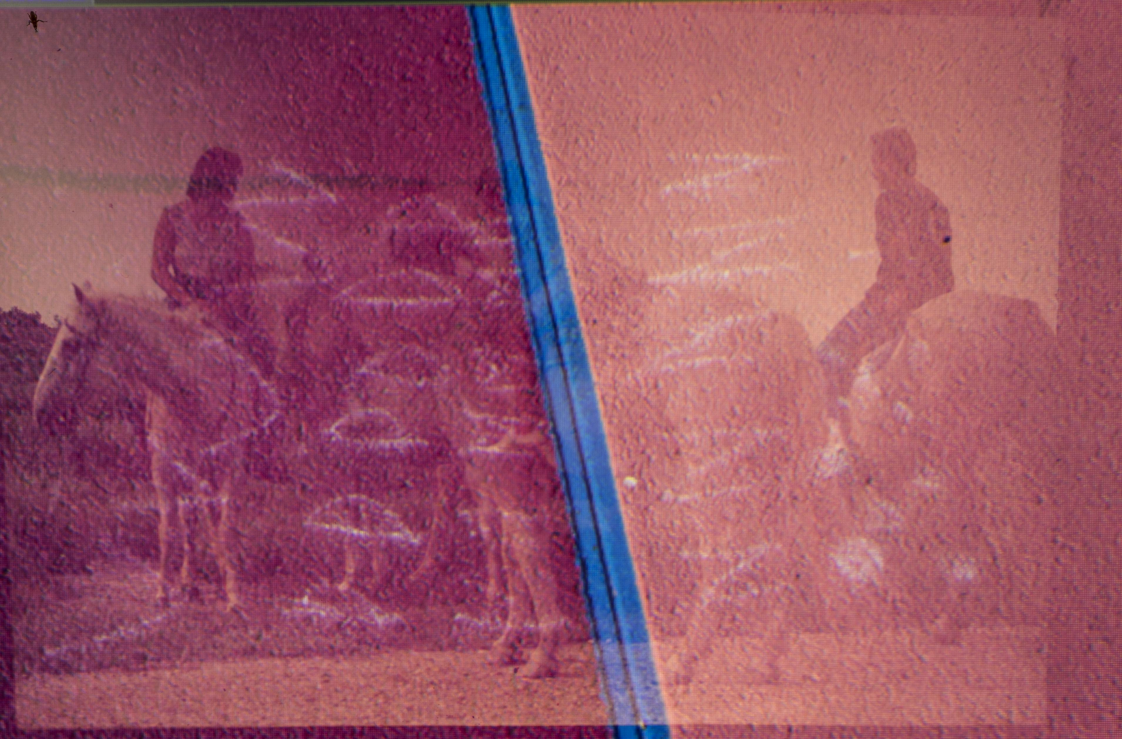 En el estudio, utilicé diferentes proyectores para superponer estas imágenes —diapositivas, negativos y archivos digitales— y fotografié el encuentro de luces y sombras que generaban estas capas superpuestas. Así, creé nuevas imágenes que reflejan mi percepción del espacio y sus habitantes, mostrando un barrio plural, heterogéneo y en constante transformación.