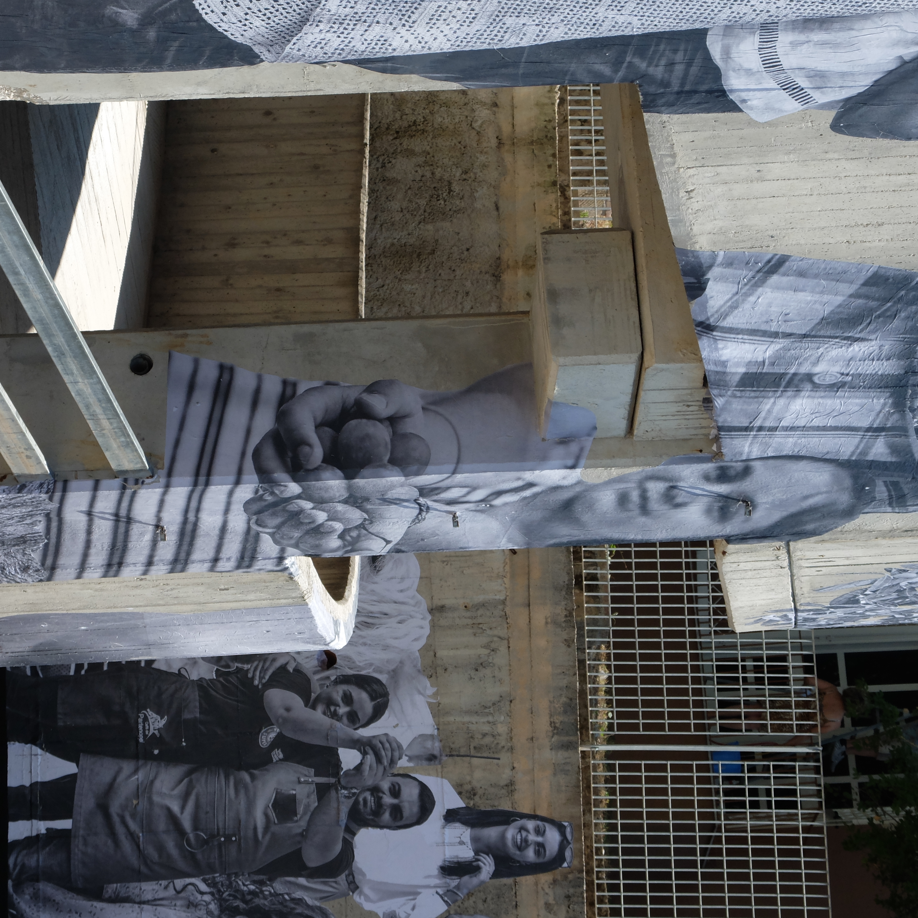 Connessioni es un mural que surge del encuentro entre fotografía y comunidad en Caiazzo, un pequeño municipio de la provincia de Caserta, Italia. En agosto de 2020, en un momento marcado por la necesidad de reconectar tras el confinamiento, los rostros, manos y miradas de sus habitantes se entrelazaron en una línea continua que recorre la pared del aparcamiento multipiano del pueblo.