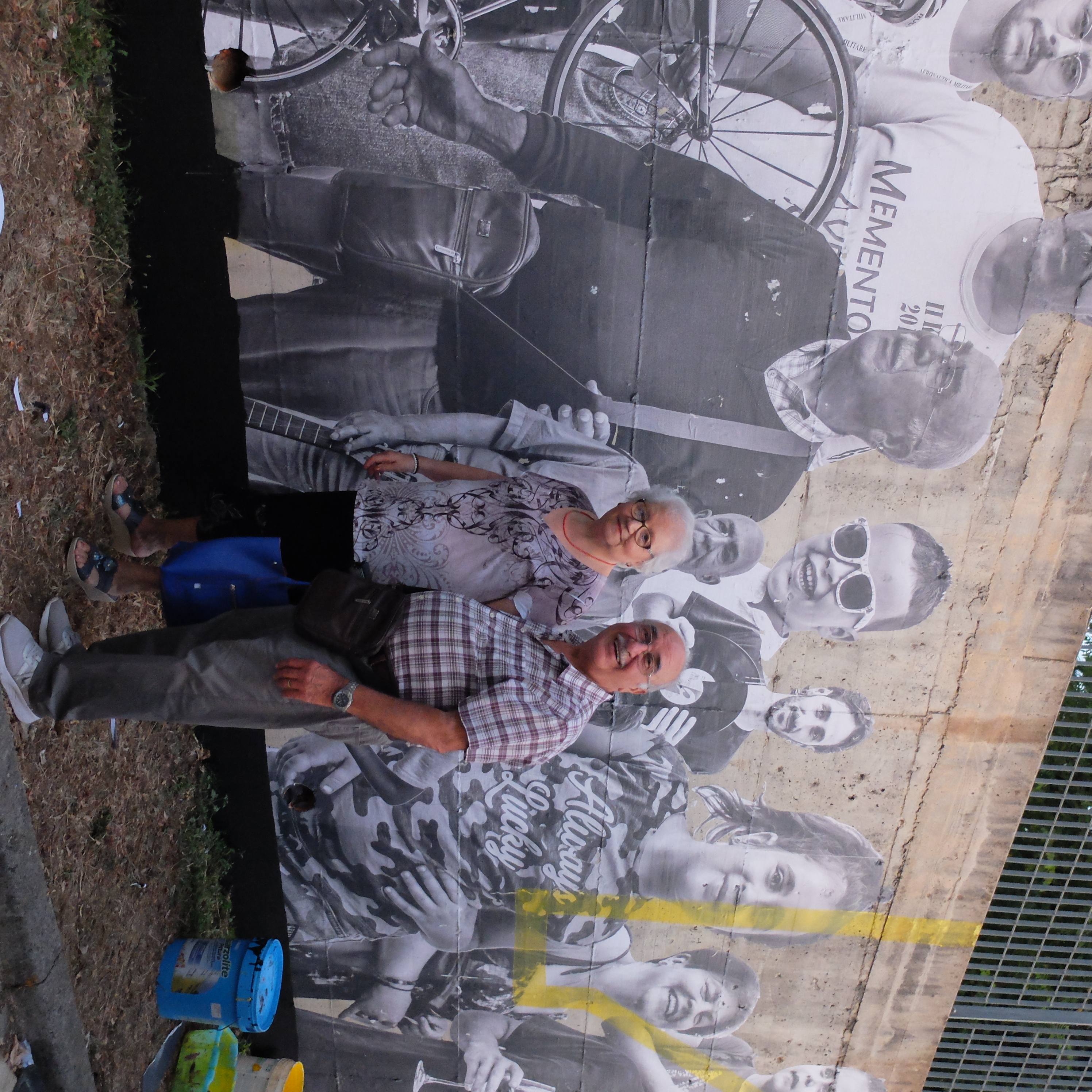 ¿Qué? Intervención mural participativa basada en fotografía comunitaria, que reúne retratos de habitantes de Caiazzo en una línea continua.